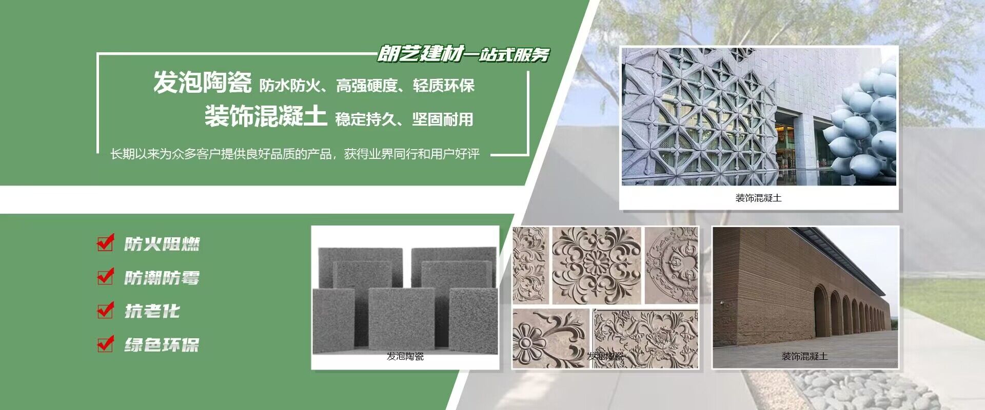 裝飾混凝土、發(fā)泡陶瓷實(shí)力廠家 成立于2006年,專(zhuān)業(yè)從事EPS、GRC、GRG、發(fā)泡陶瓷、裝飾混凝土等新型裝飾造型材料的設(shè)計(jì)、研發(fā)、生產(chǎn)和服務(wù)的綜合性企業(yè)